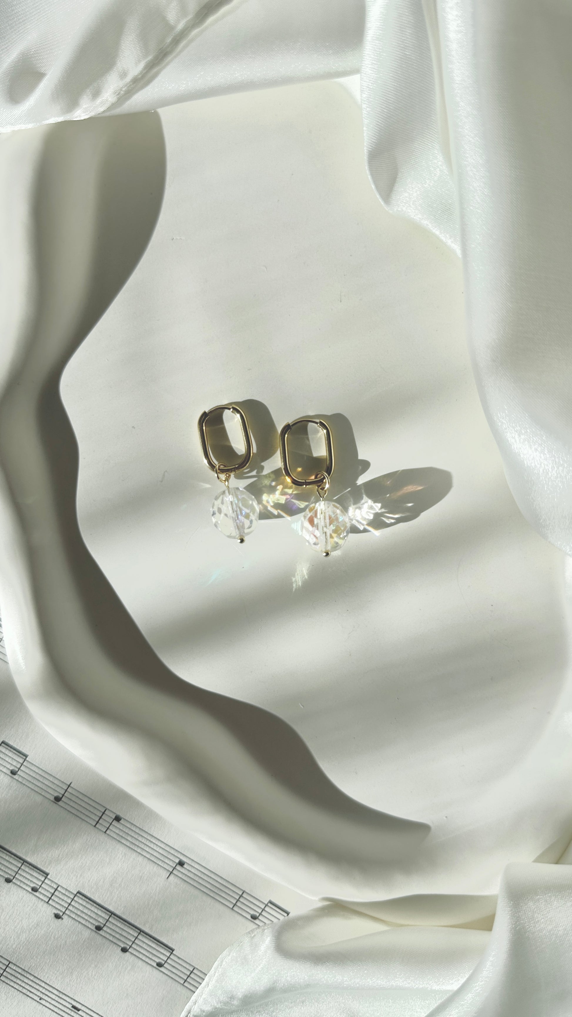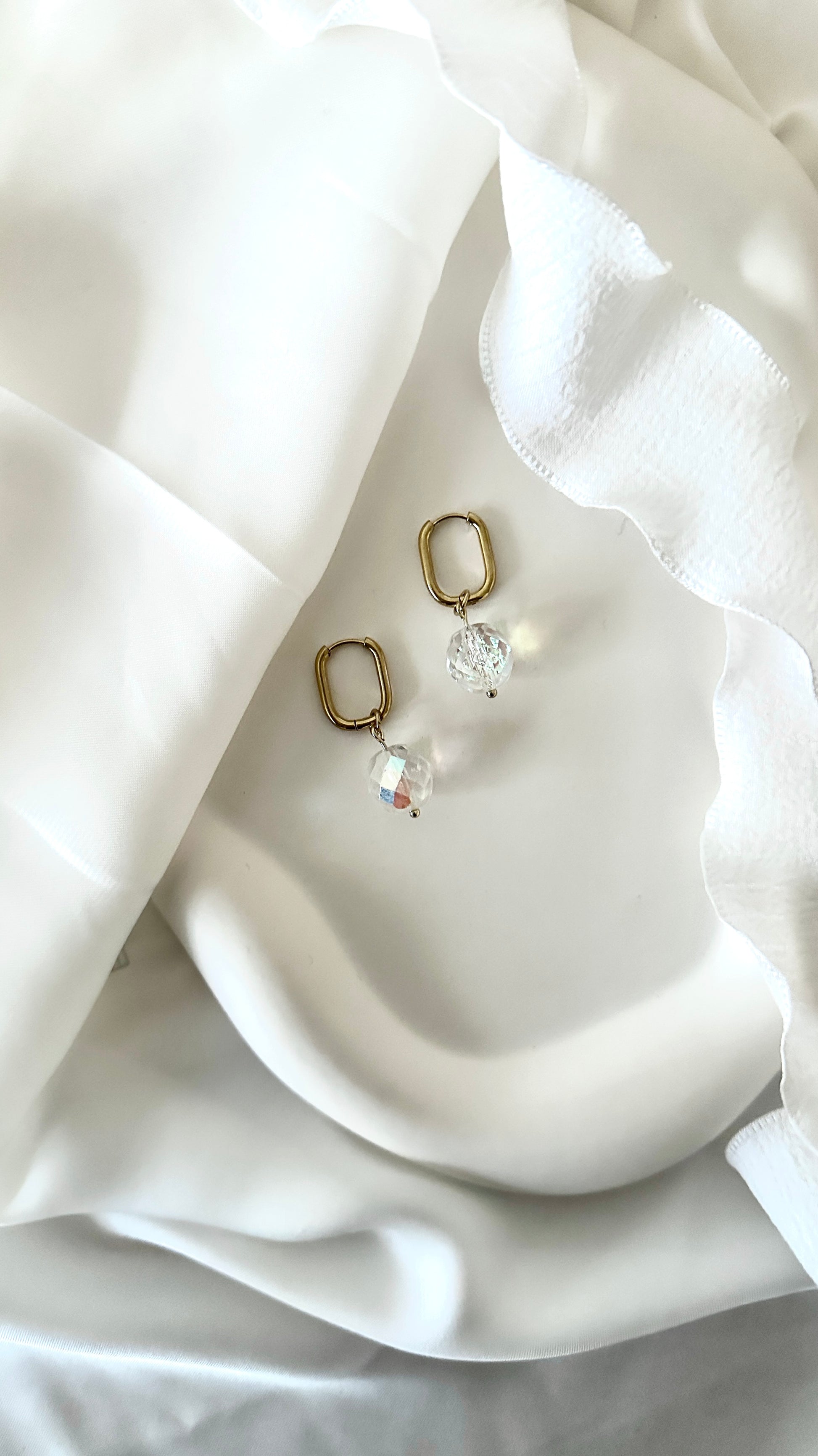 Aurora-korvakorut sädehtivät valoa joka kulmasta. Kullansävyiseen PVD-pinnoitettuun rengasosaan on kiinnitetty kirkas fasettihiottu lasikristalli, joka taittaa valoa upeasti sateenkaaren väreissä.