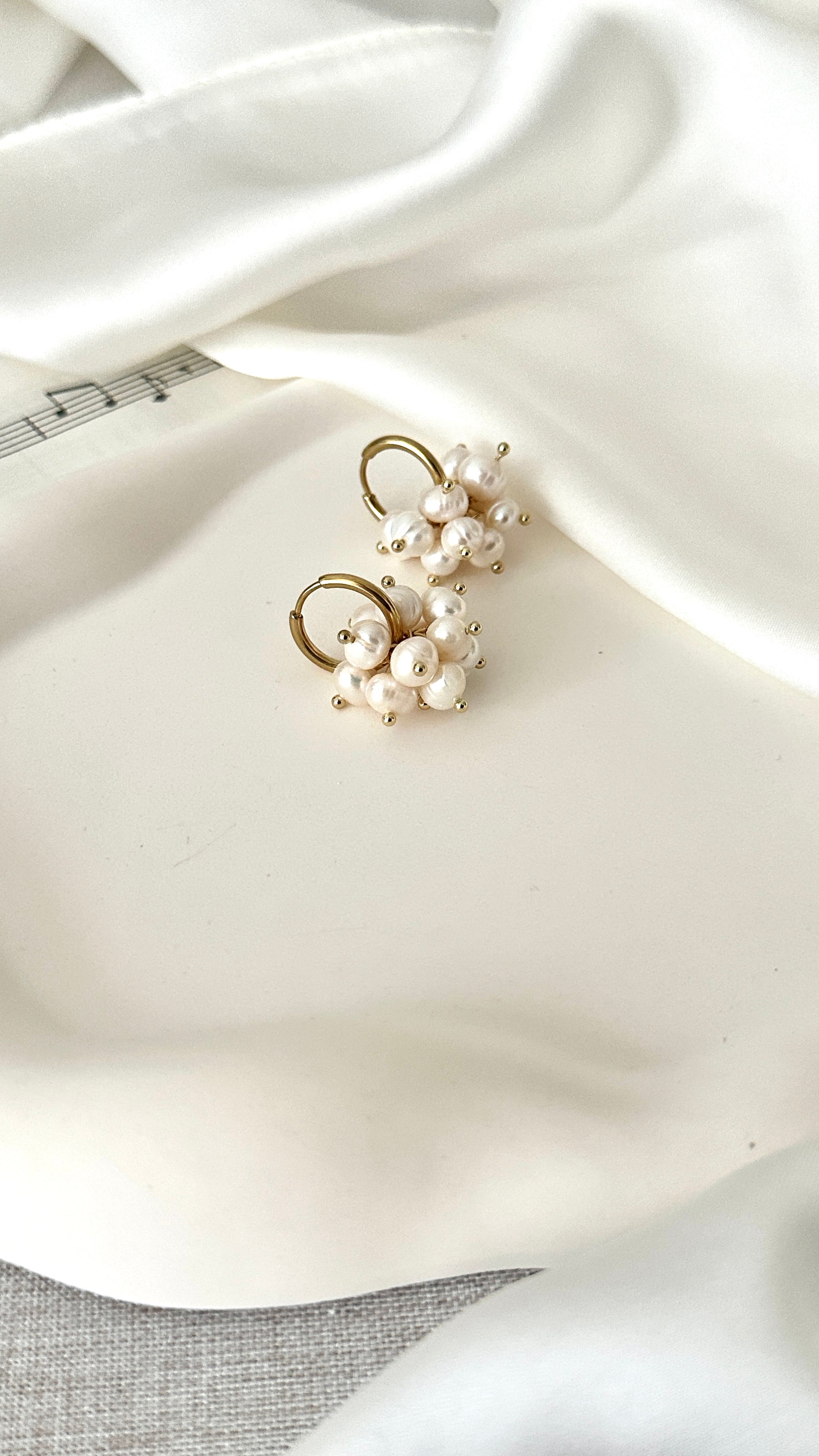 HELENA-korvakorut ovat aidoista, valkoisista makeanvedenhelmistä käsin kootut korut, joissa jokainen helmi on omanlaisensa. Helminippu on irrotettava – voit käyttää korua minimalistisesti pelkkänä renkaana tai lisätä helmet mukaan, kun haluat näyttävämmän ilmeen.