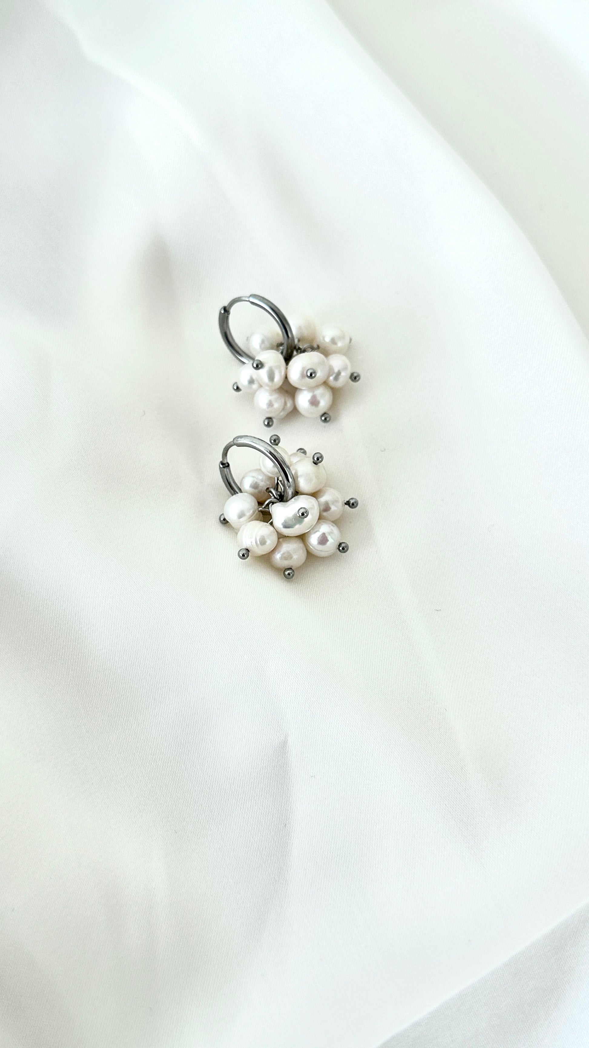HELENA-korvakorut ovat aidoista, valkoisista makeanvedenhelmistä käsin kootut korut, joissa jokainen helmi on omanlaisensa. Helminippu on irrotettava – voit käyttää korua minimalistisesti pelkkänä renkaana tai lisätä helmet mukaan, kun haluat näyttävämmän ilmeen.