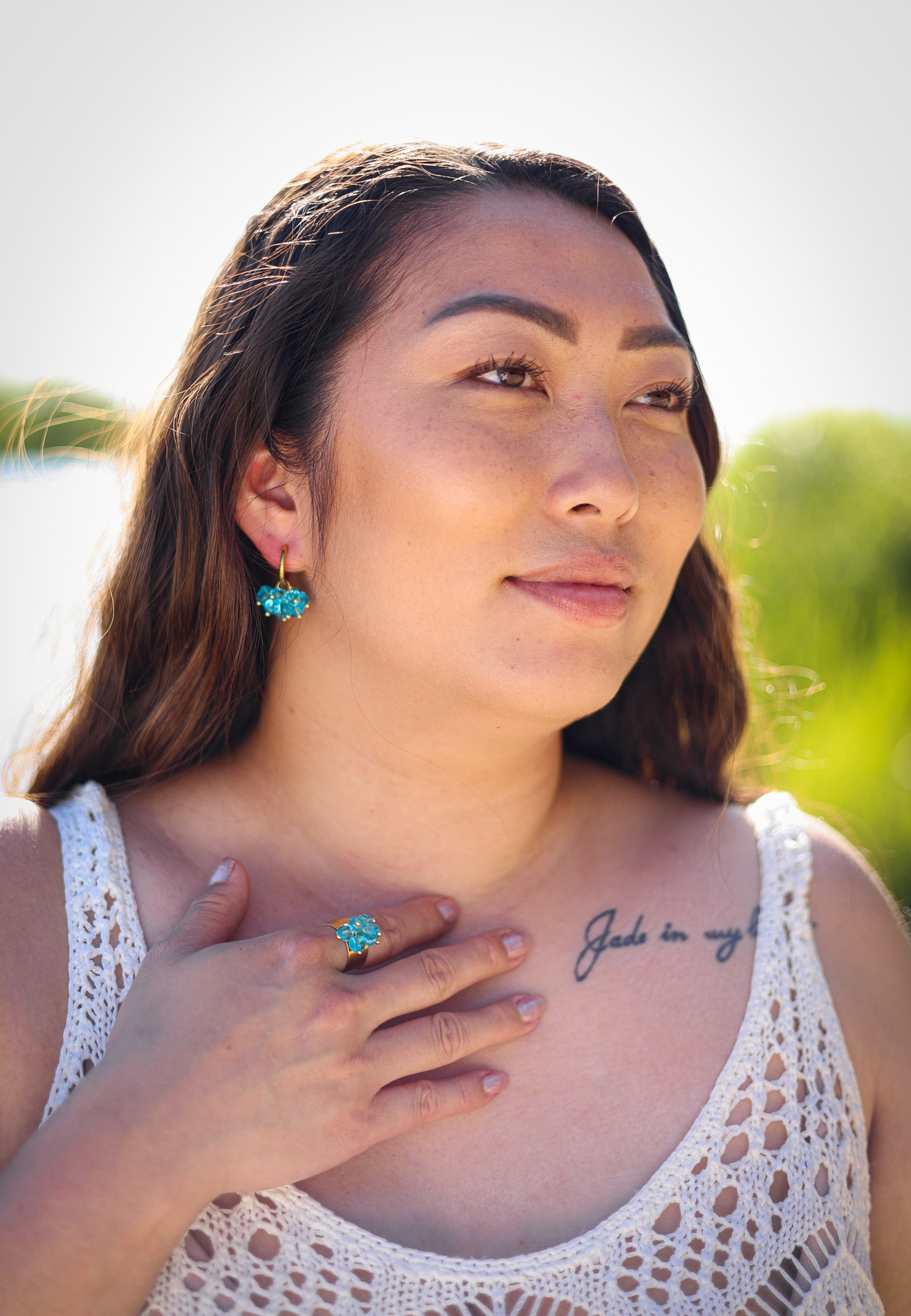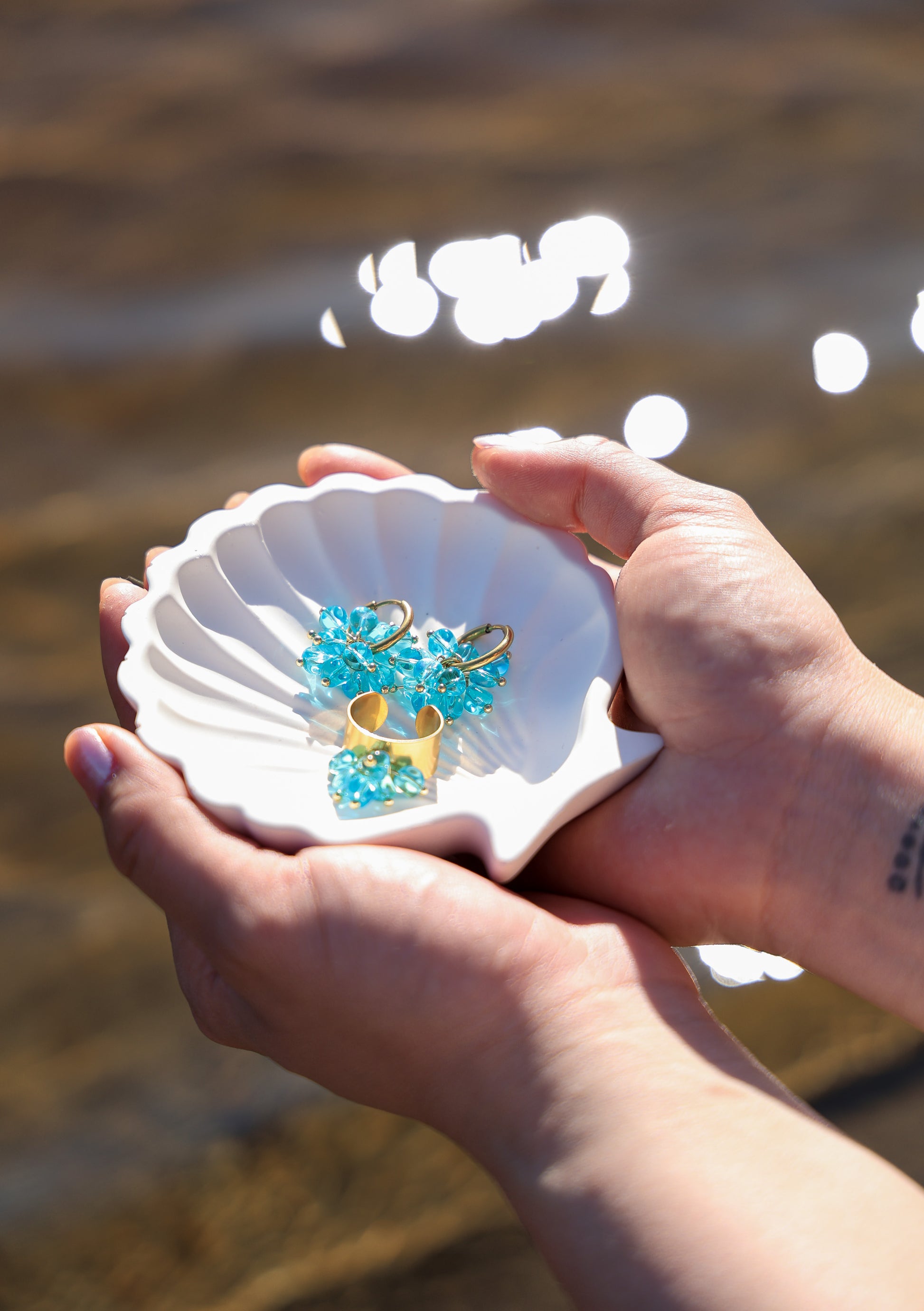 Helena-setti on valmistettu käsin laadukkaista, kirkkaista turkoosinvärisistä lasihelmistä, jotka tuovat mieleen raikkaan meren välkkeen. Korut on pinnoitettu kestävästi 18 karaatin PVD-kultauksella.