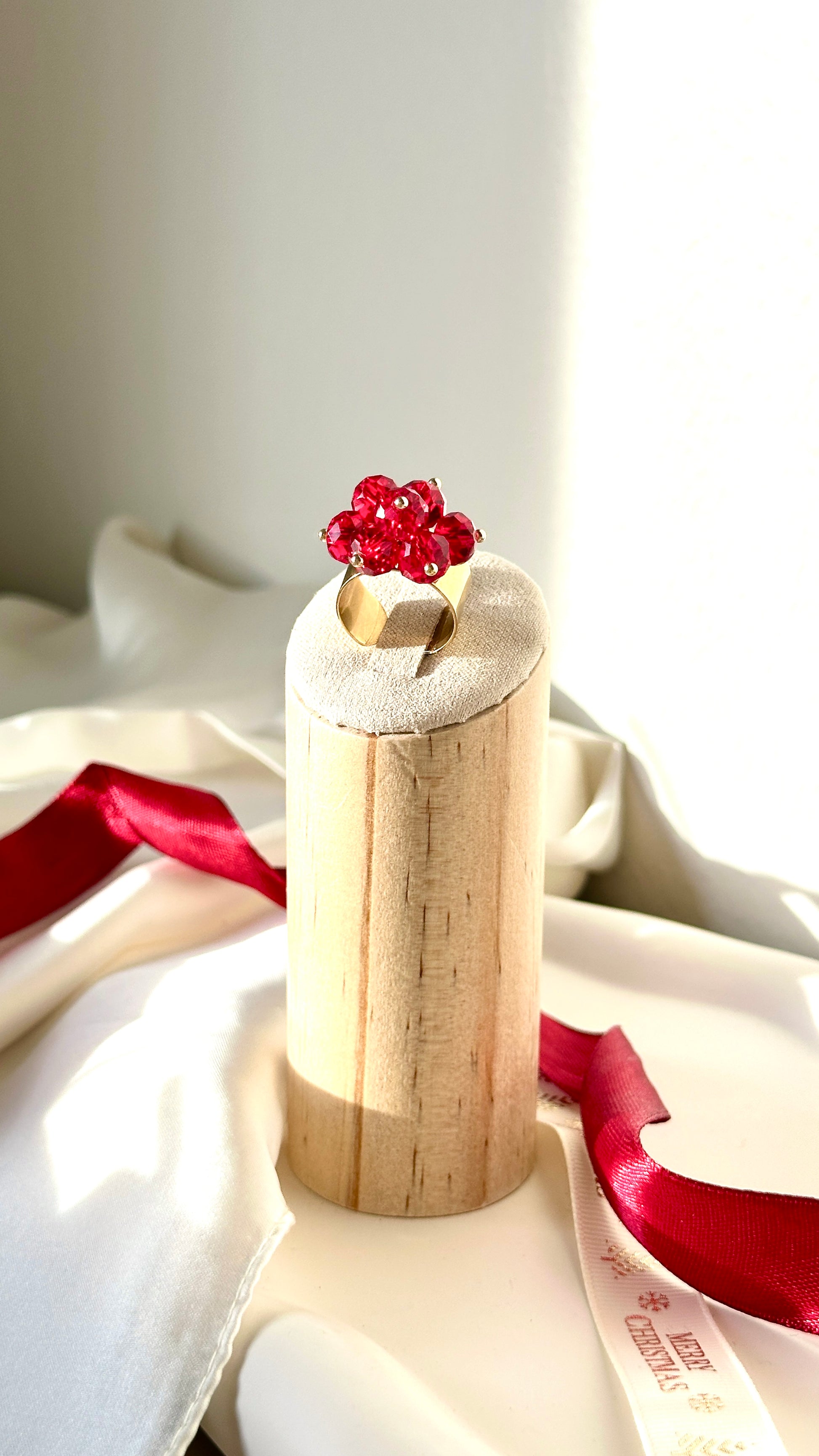 Helena-sormus on näyttävä sormus, jossa syvänpunaiset tšekkiläiset kristallihelmet muodostavat kauniin, korumaisen rypälemuodon. Sävy ja muotoilu tekevät sormuksesta juhlaan sopivan yksityiskohdan, mutta se toimii myös talven arjen kohokohtana, kun haluat lisätä asuusi lämpöä ja pientä joulun tuntua.