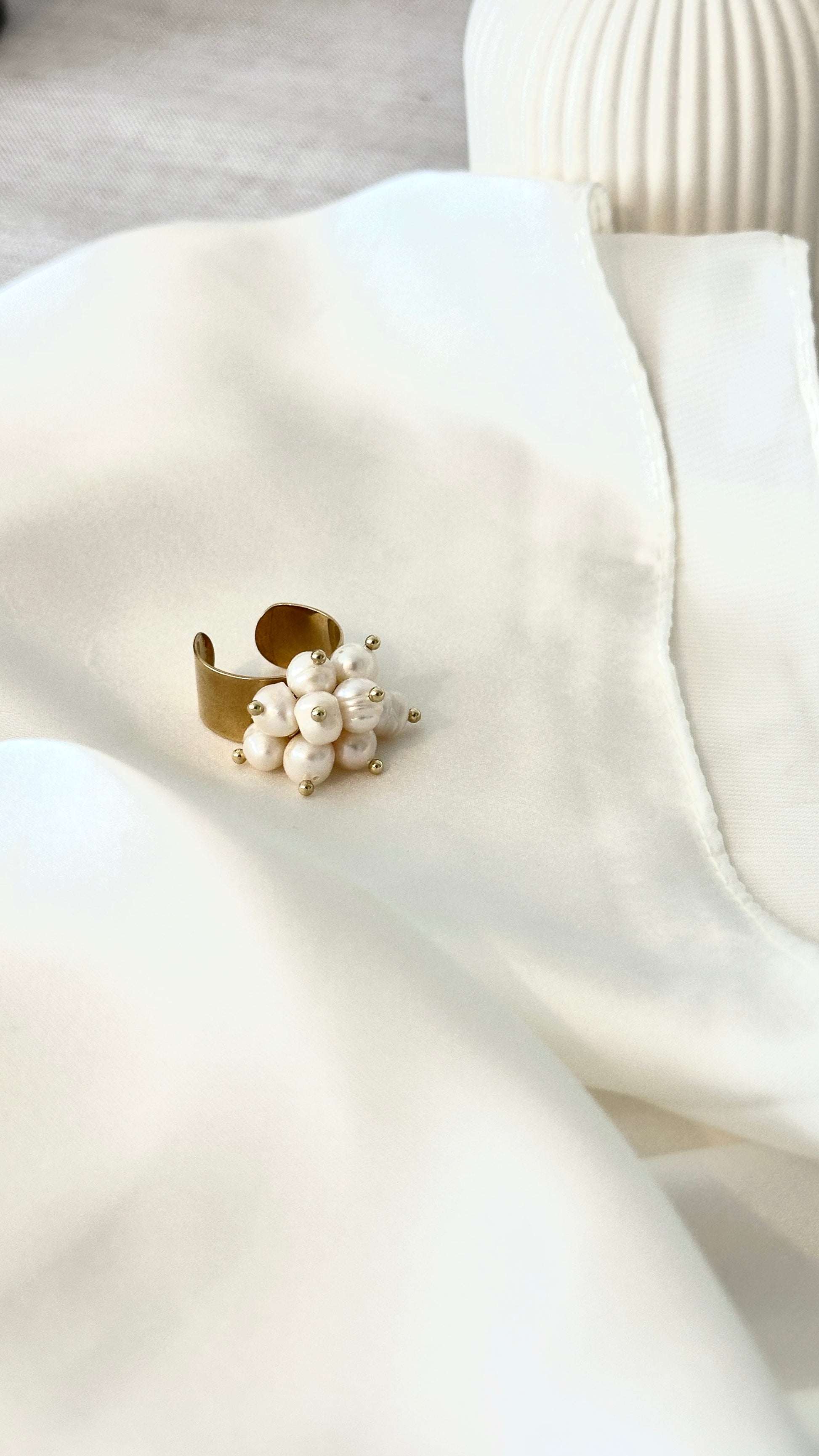 HELENA-sormus ovat aidoista, valkoisista makeanvedenhelmistä käsin koottu sormus, jossa jokainen helmi on omanlaisensa. Sormus on 18K kullattua kirurginterästä, jossa lisäksi PVD-pinnoite. Ajaton muotoilu ja laadukkaat materiaalit tekevät tästä korusta kestävän ja monikäyttöisen.