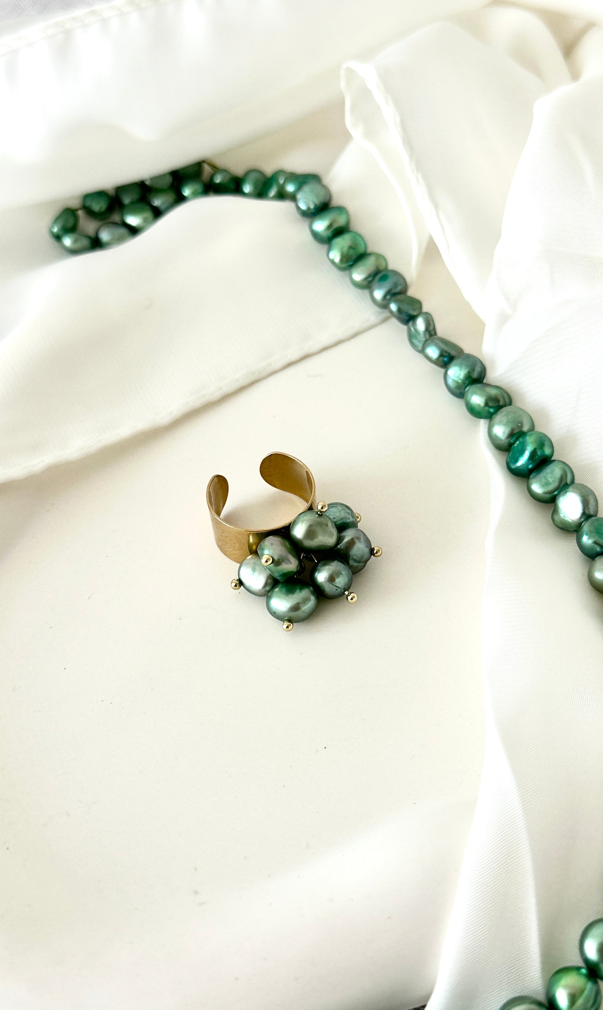 HELENA-sormus ovat aidoista, vihreiksi värjätyistä makeanvedenhelmistä käsin koottu sormus, jossa jokainen helmi on omanlaisensa. Sormus on 18K kullattua kirurginterästä, jossa lisäksi PVD-pinnoite. Ajaton muotoilu ja laadukkaat materiaalit tekevät tästä korusta kestävän ja monikäyttöisen.