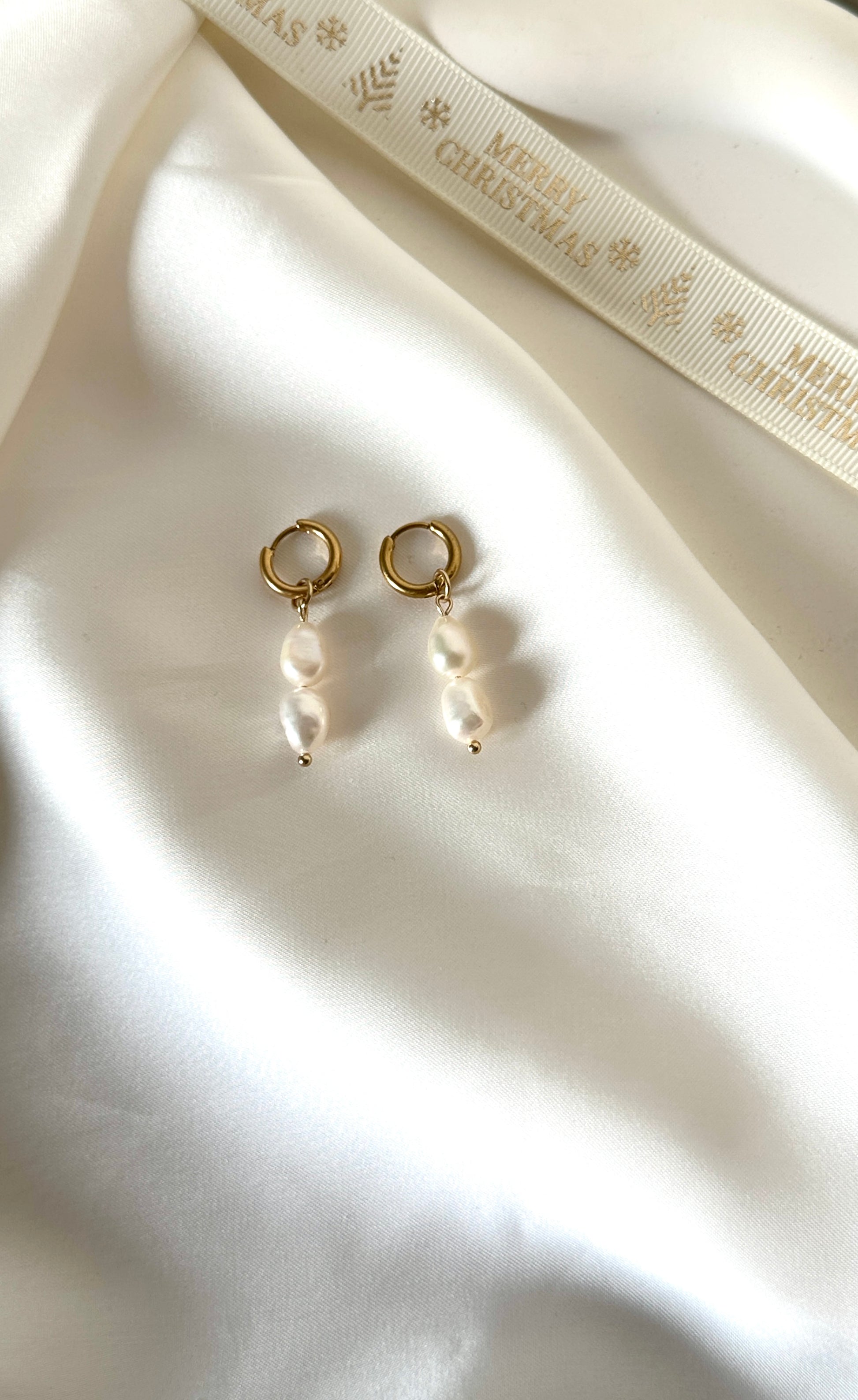 Helmi Line -korvakorut ovat kaunis ja siro yhdistelmä kahta makeanvedenhelmeä, jotka laskeutuvat kevyesti kultarenkaan alta. Jokainen helmi on luonnostaan hieman eri muotoinen, mikä tekee parista aidon ja yksilöllisen.
