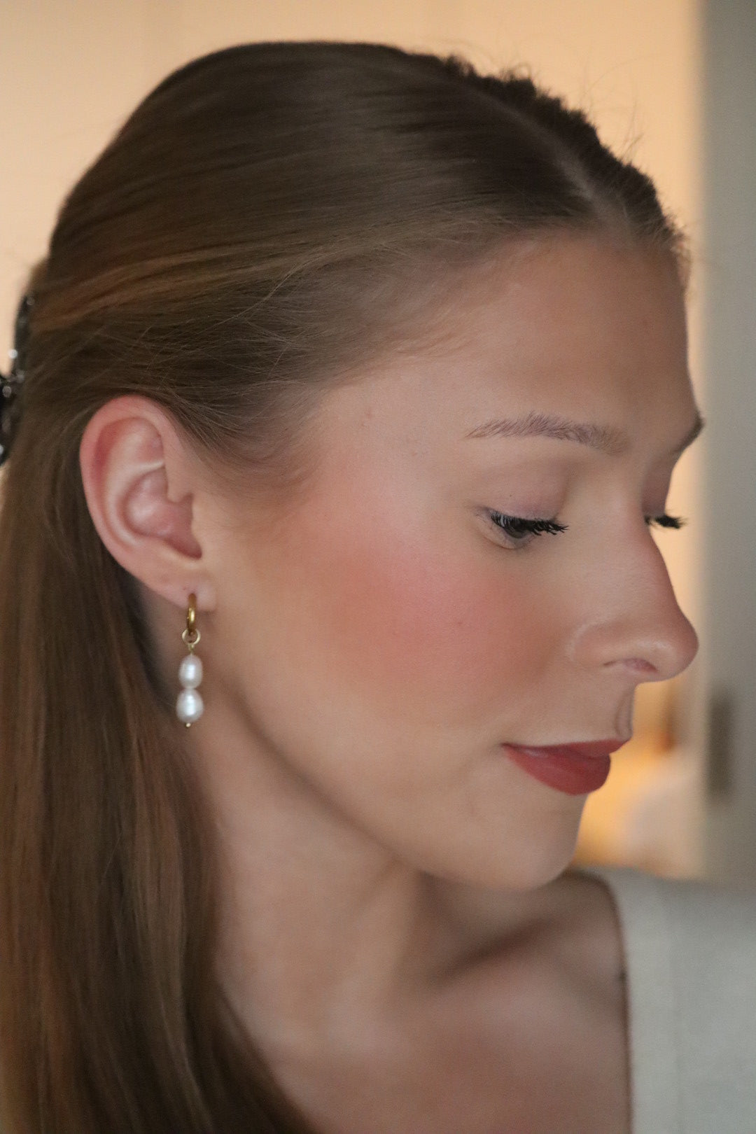 18 karaatin kullatut kirurginteräsrenkaat tekevät koruista miellyttävät ja huolettomat käyttää, ja pehmeä helmenhohto tuo asuun rauhallisen ja ajattoman ilmeen. Helmi Line sopii täydellisesti arkeen, juhlaan ja kerrostettavaksi muiden helmikorujen kanssa.