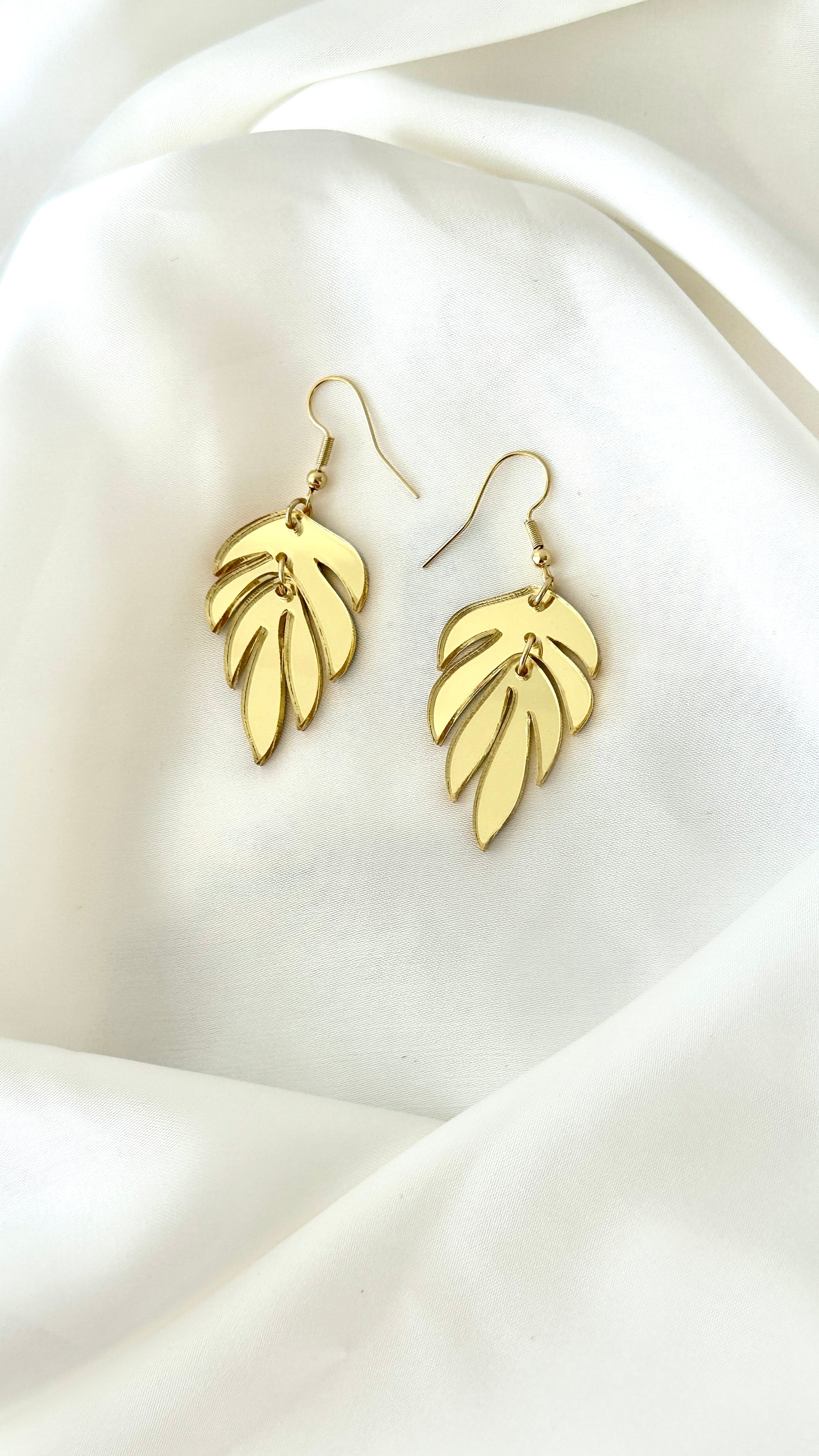 Kullanväriset, kevyet lehtikorvakorut peilikiiltävästä akryylista. Selkeä muotoilu ja kaunis kiilto viimeistelevät korujen ilmeen.