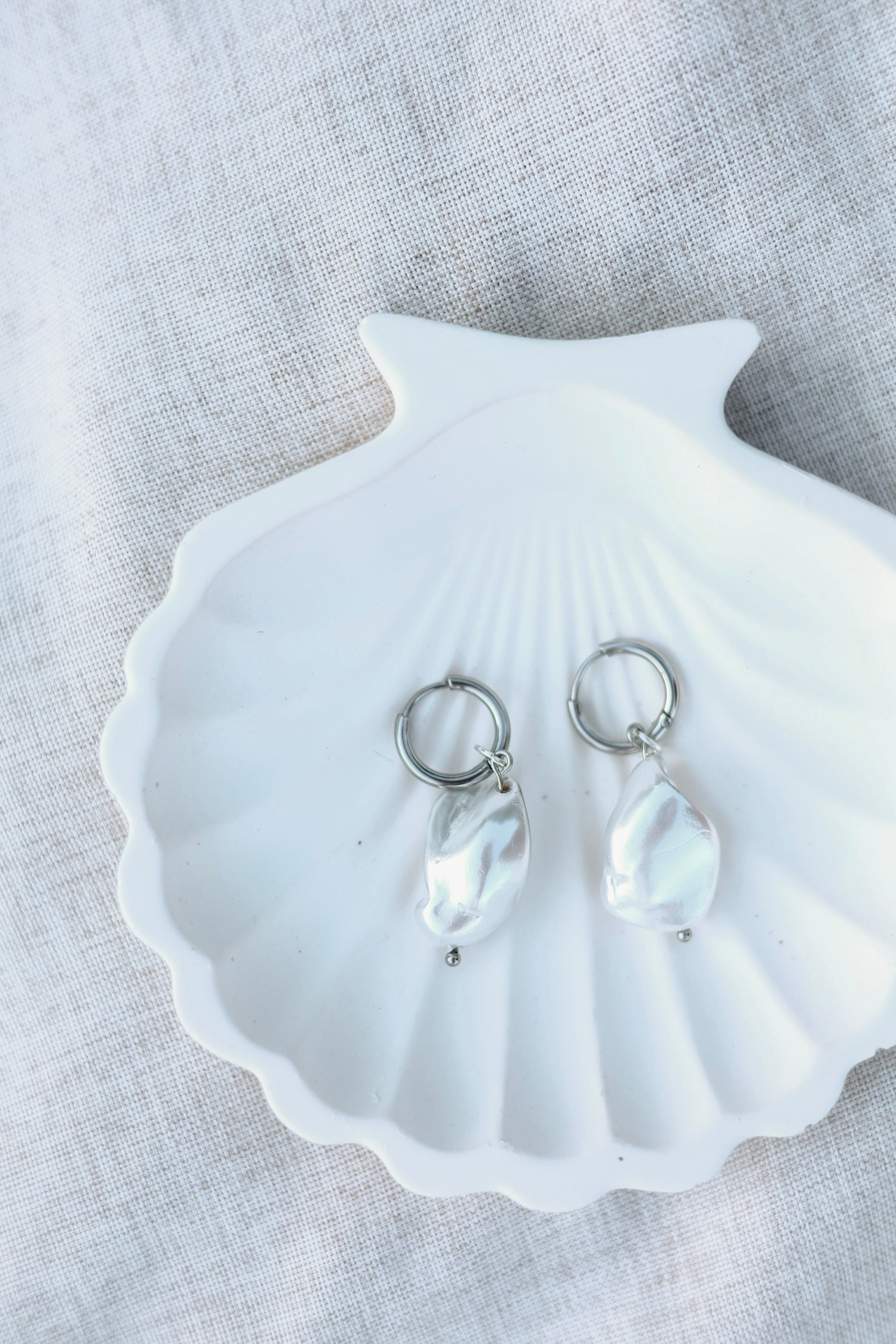 Maris-korvakorut ovat hillitty ja klassinen valinta. Valmistettu simpukasta ja simpukan helmiäisestä ja ne ovat sävyssä silver white. Korut ovat kevyet ja mukavat käyttää, joka tekee niistä täydellisen valinnan päivittäiseen käyttöön. Kyseessä on luonnontuote, joten helmen muoto vaihtelee.