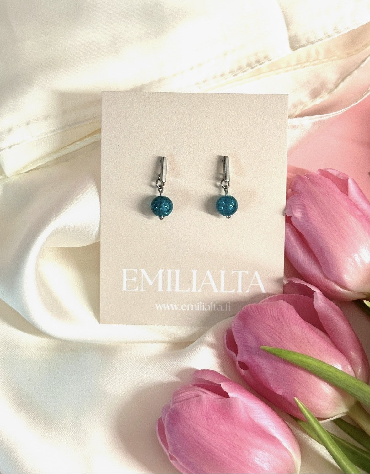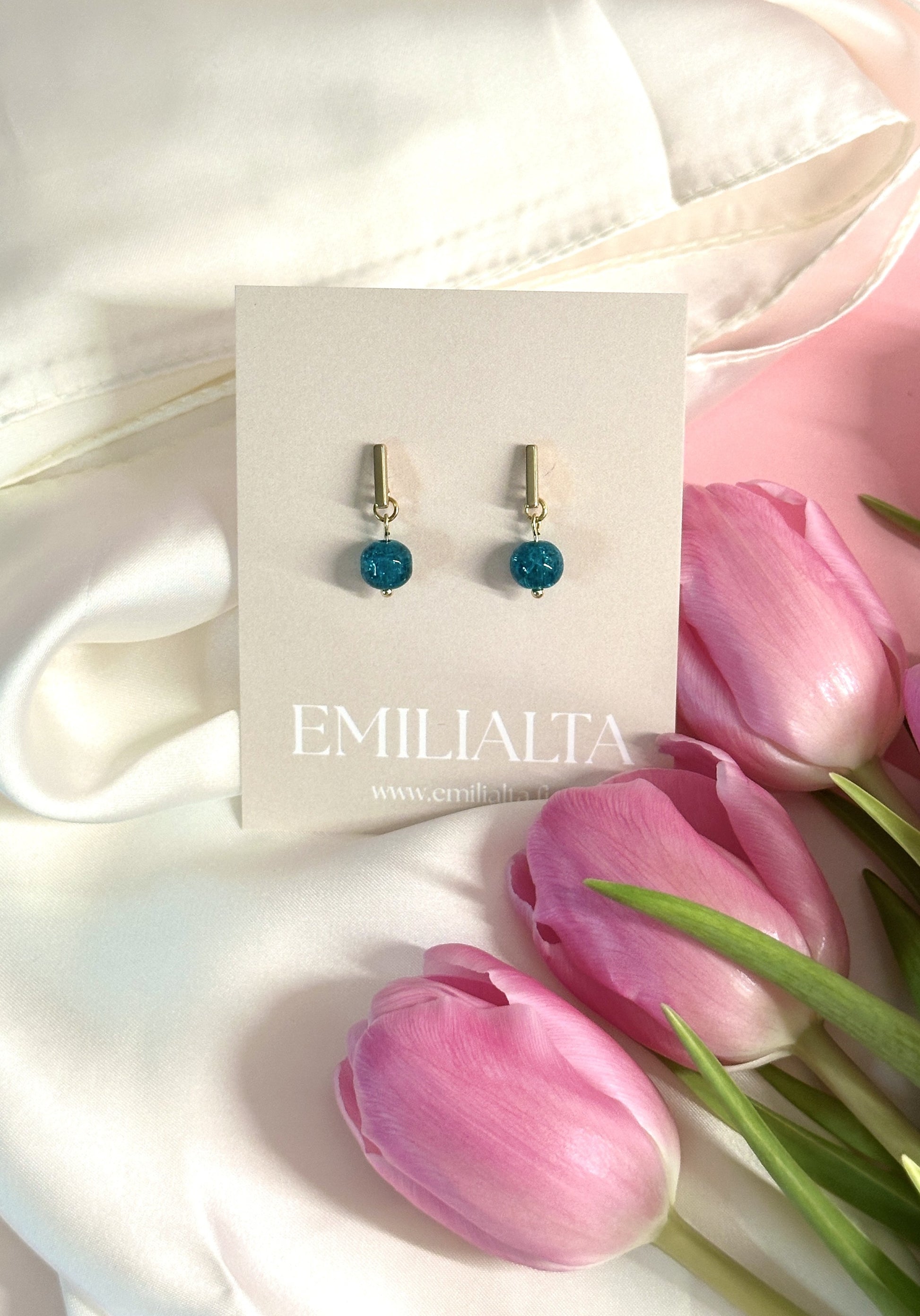 Kevyet korvakorut sinisellä lasihelmellä.