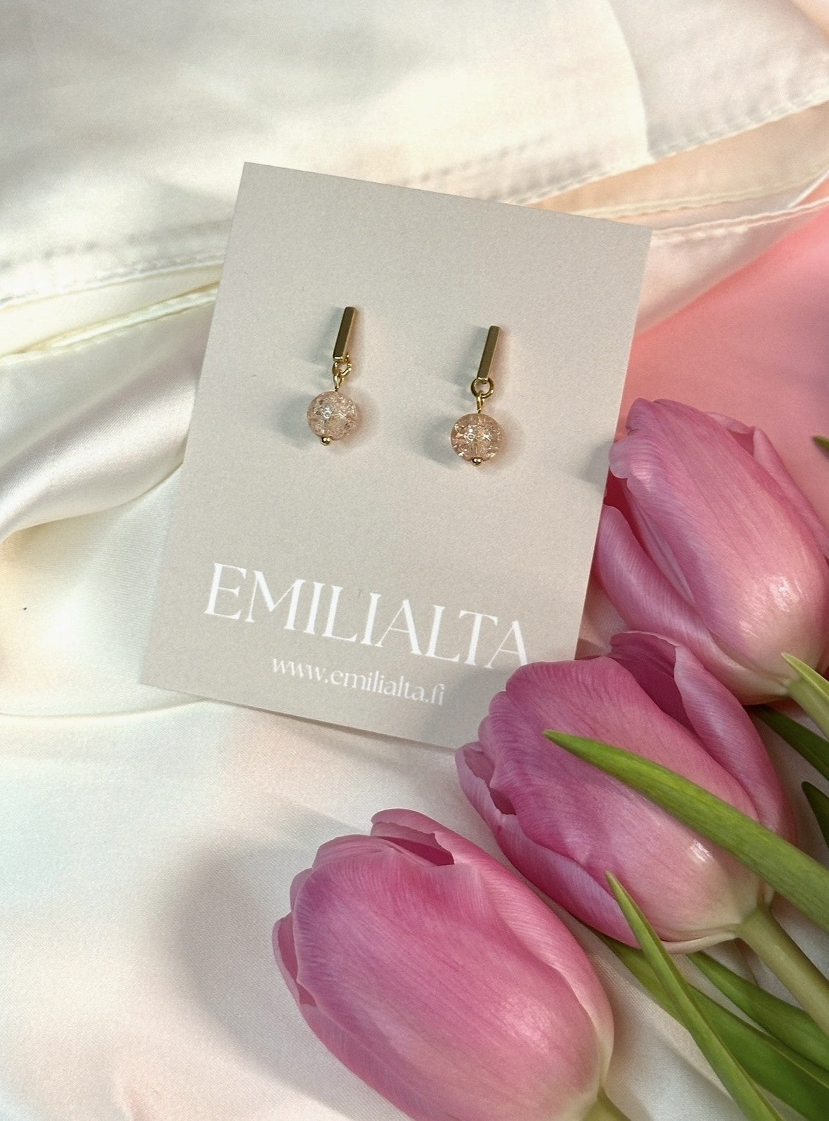 Kevyet korvakorut haalean persikan sävyisellä lasihelmellä.