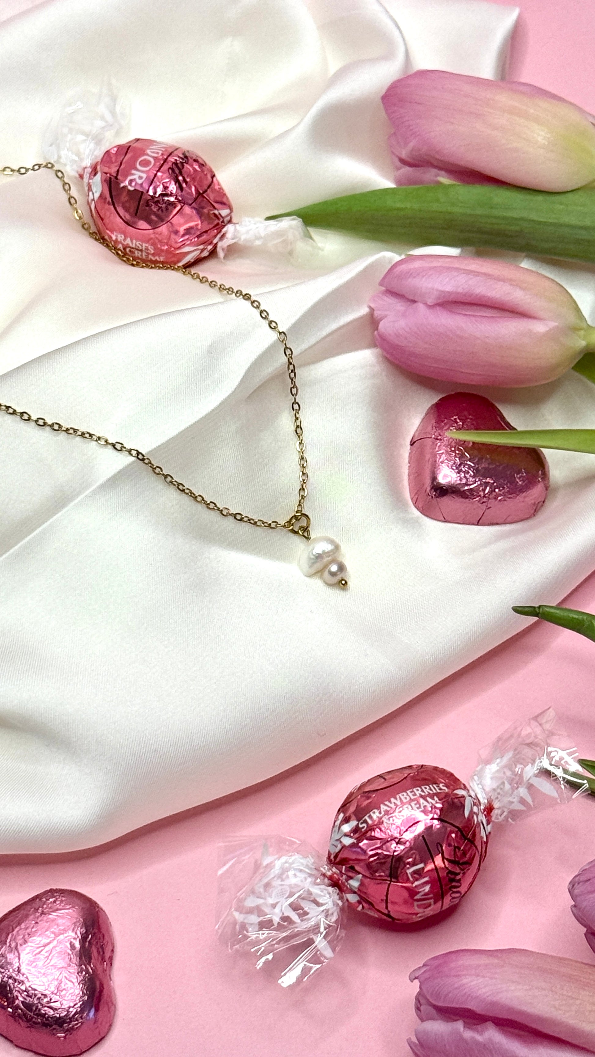 Kaulakoru kahdella makeanvedenhelmellä.