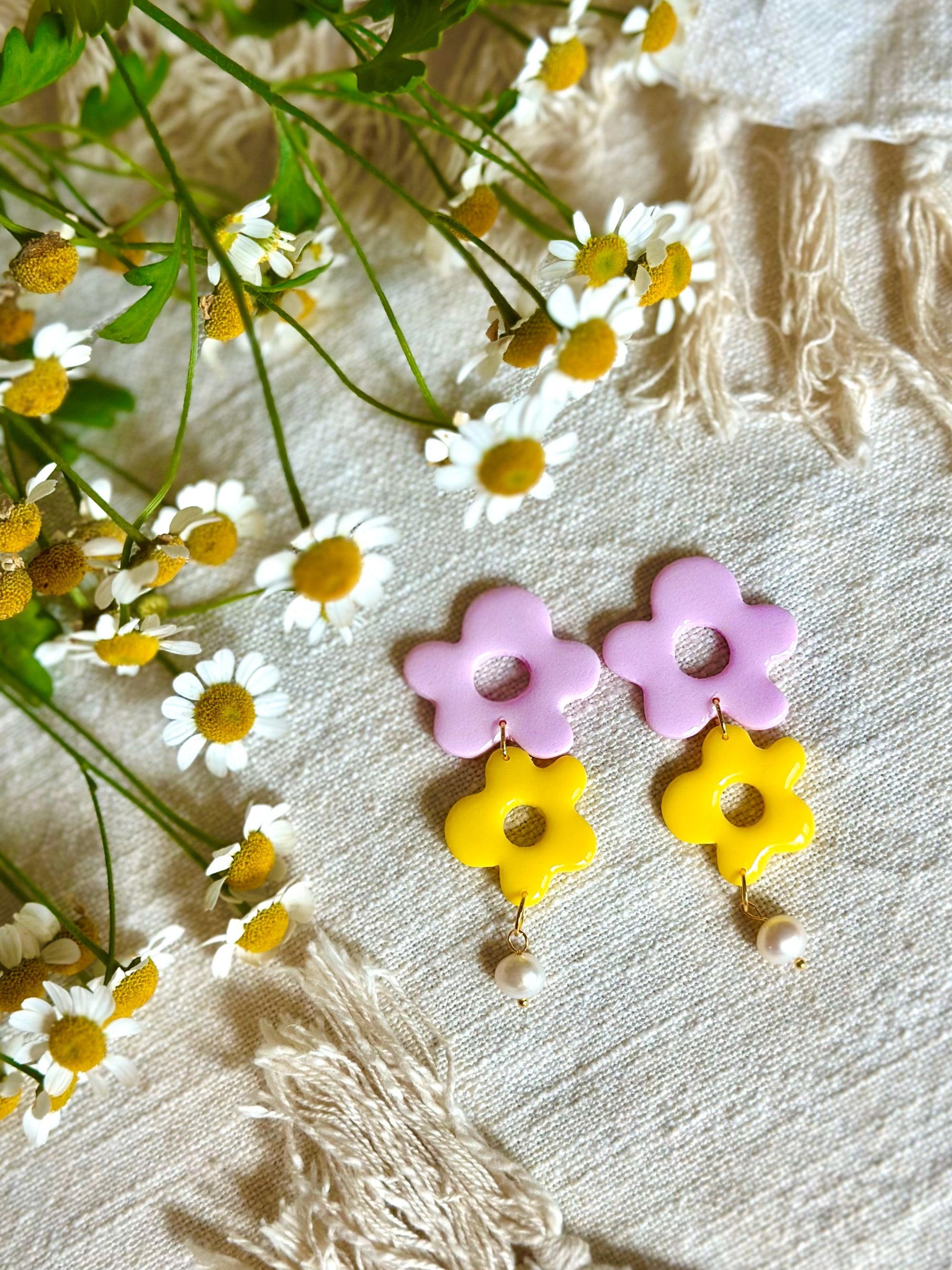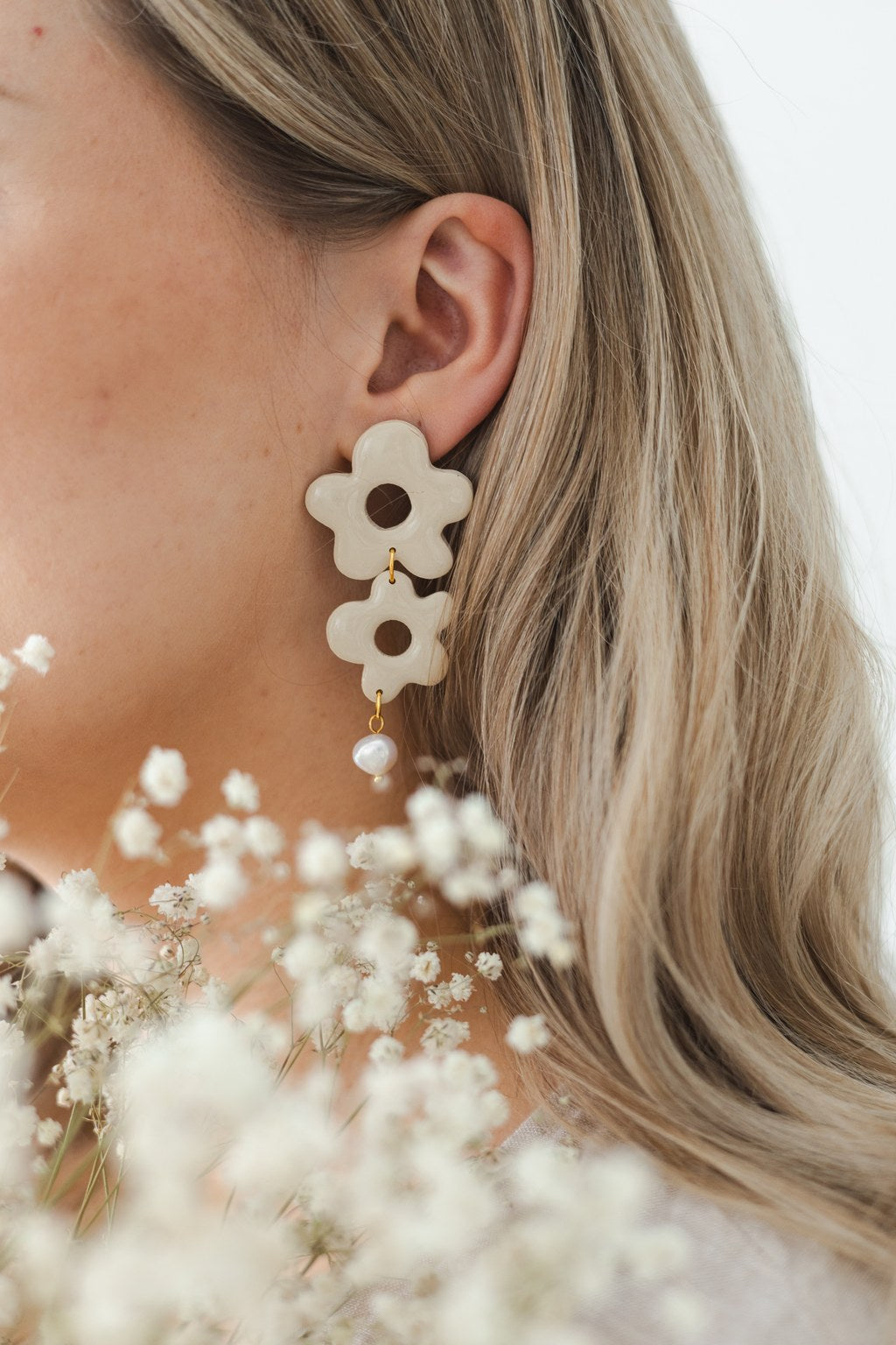 Käsityönä valmistetut kukkakorvakorut, viimeistelty aidolla makeanveden helmellä. Nämä korvakorut tuovat romanttista ilmettä asukokonaisuuteesi. <3