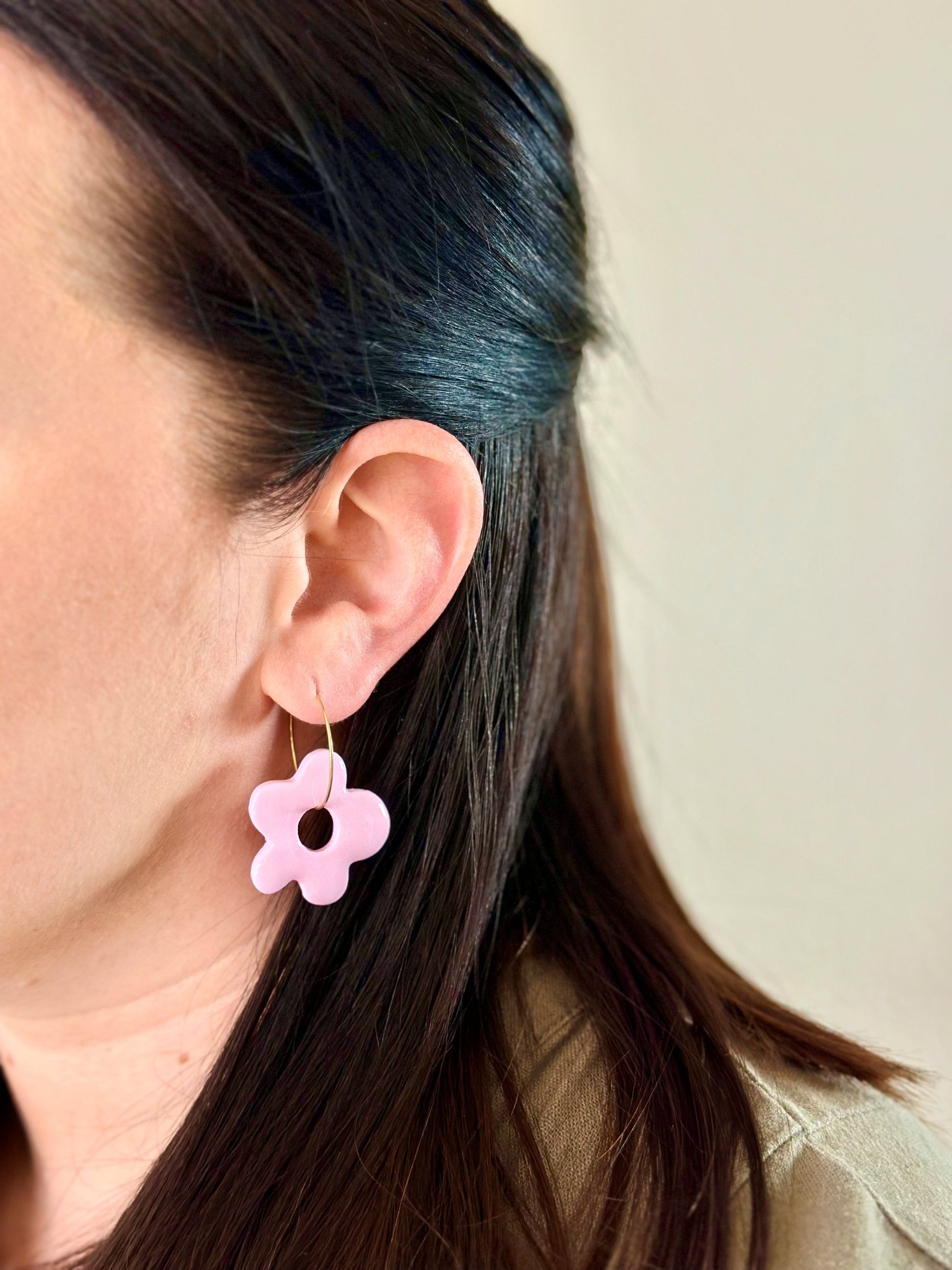 Tyylikäs ja yksinkertainen ROOSA-kukkakorvakoru, alusta alkaen tehty käsityönä! <3