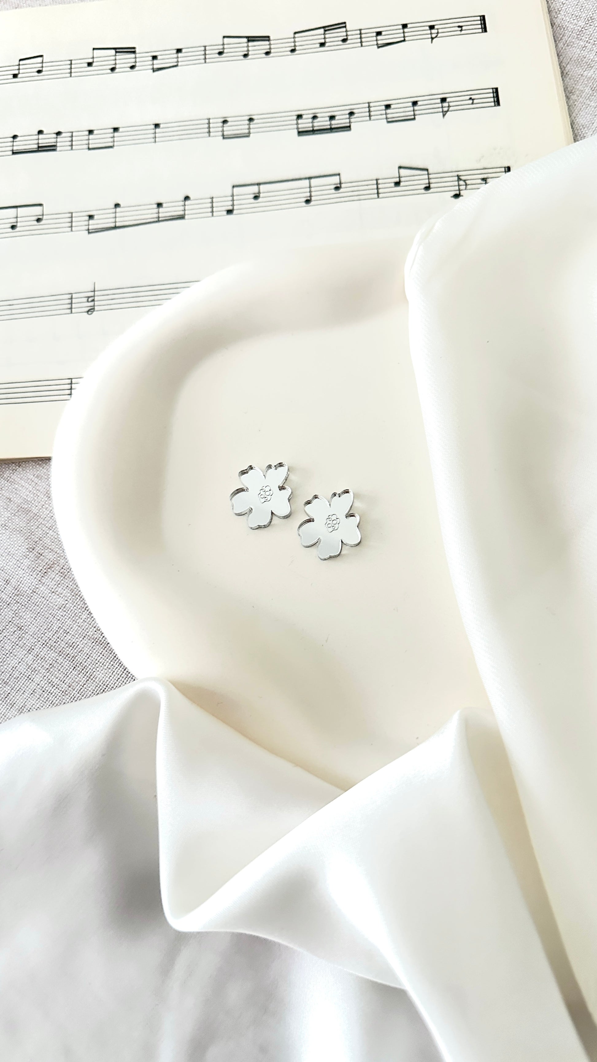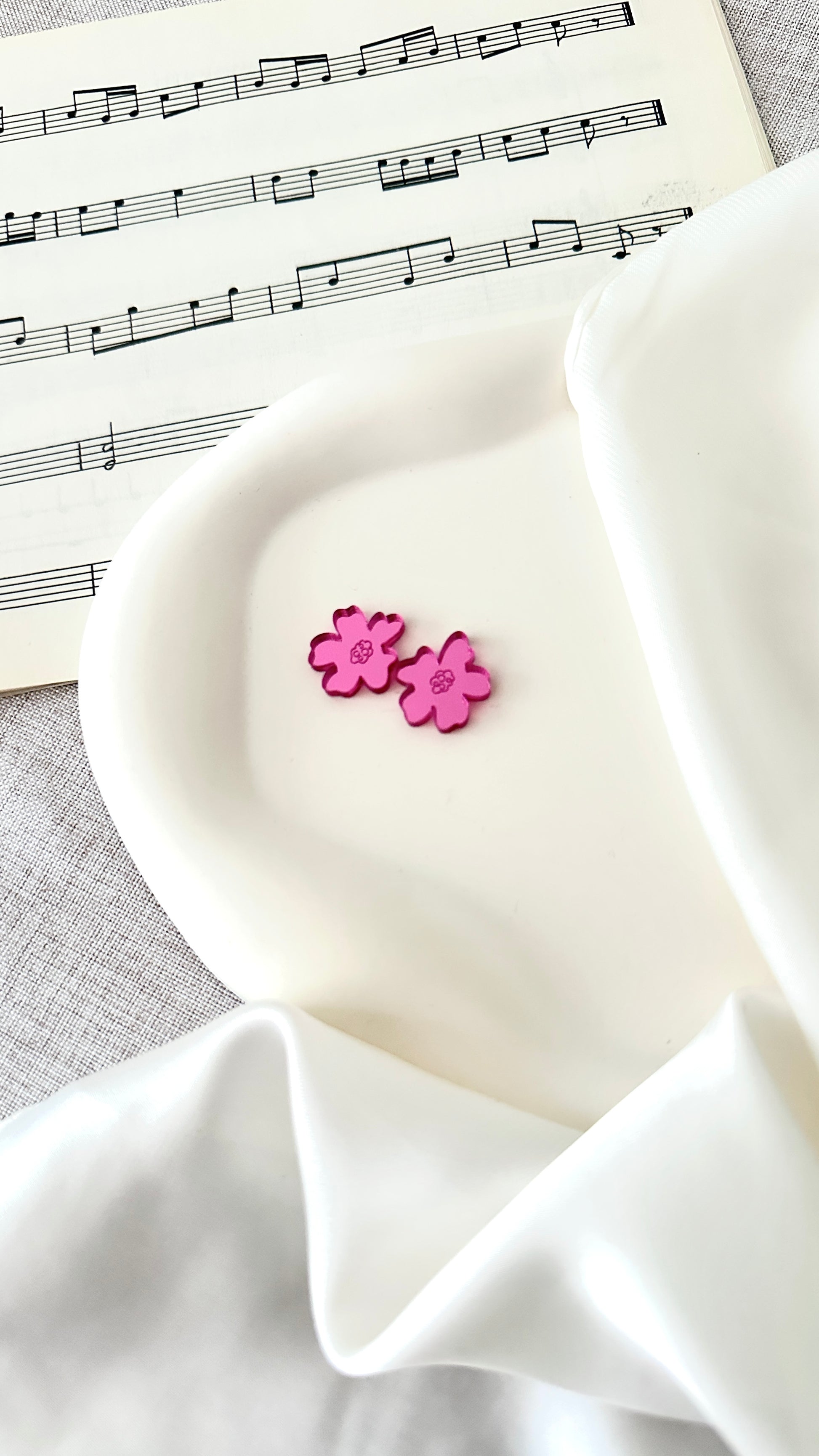 Pienet ja kevyet kukkanappikorvakorut peilikiiltävästä akryylista. Herkkä muotoilu ja kiiltävä pinta tekevät koruista tyylikkään yksityiskohdan. Saatavilla useissa väreissä.